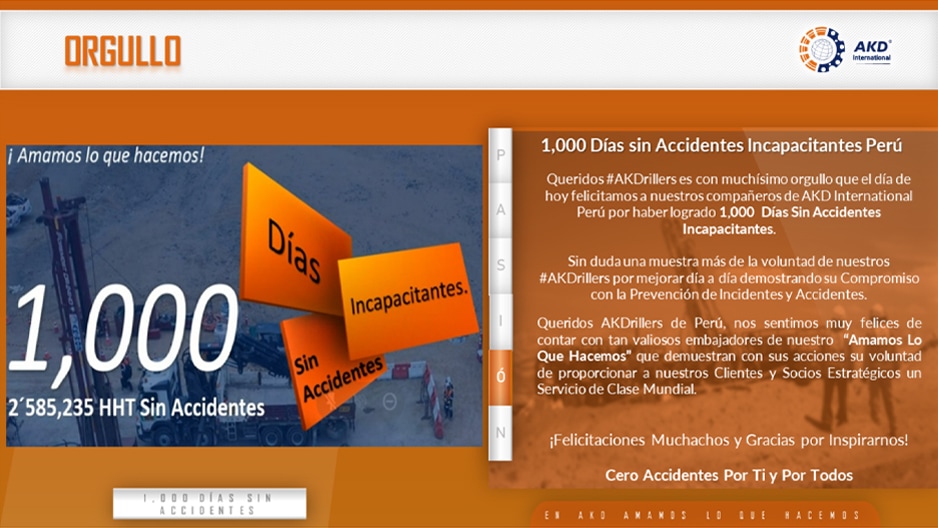 Queridos #AKDrillers es con muchísimo orgullo que el día de hoy felicitamos a nuestros compañeros de AKD International Perú por haber logrado 1,000 Días Sin Accidentes Incapacitantes.